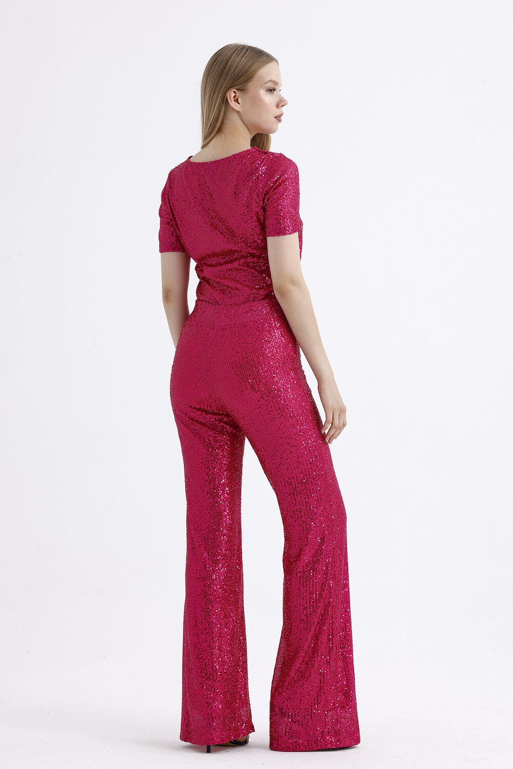 Sense Fuşya Beli Lastikli Payet Abiye Pantolon | Pnt35233