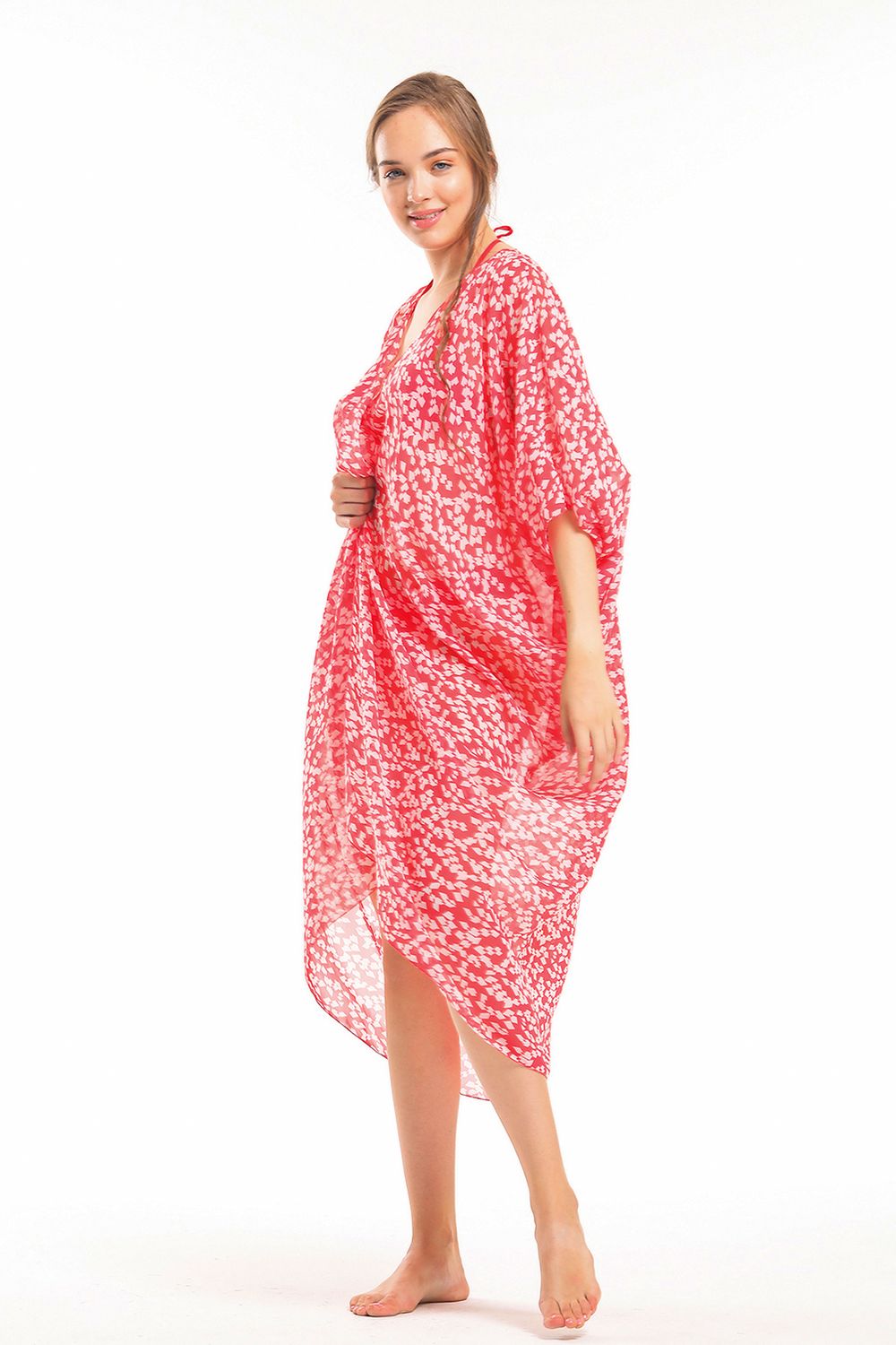 Fuşya Kareli Şifon Plaj Kimono | ELB33597 | SENSE