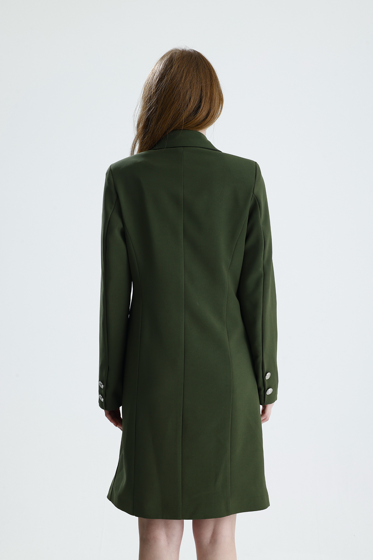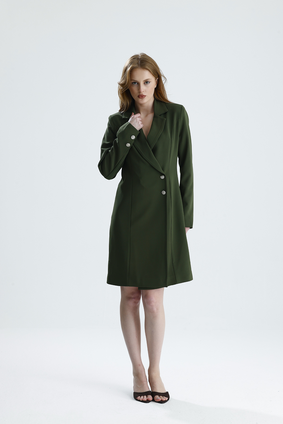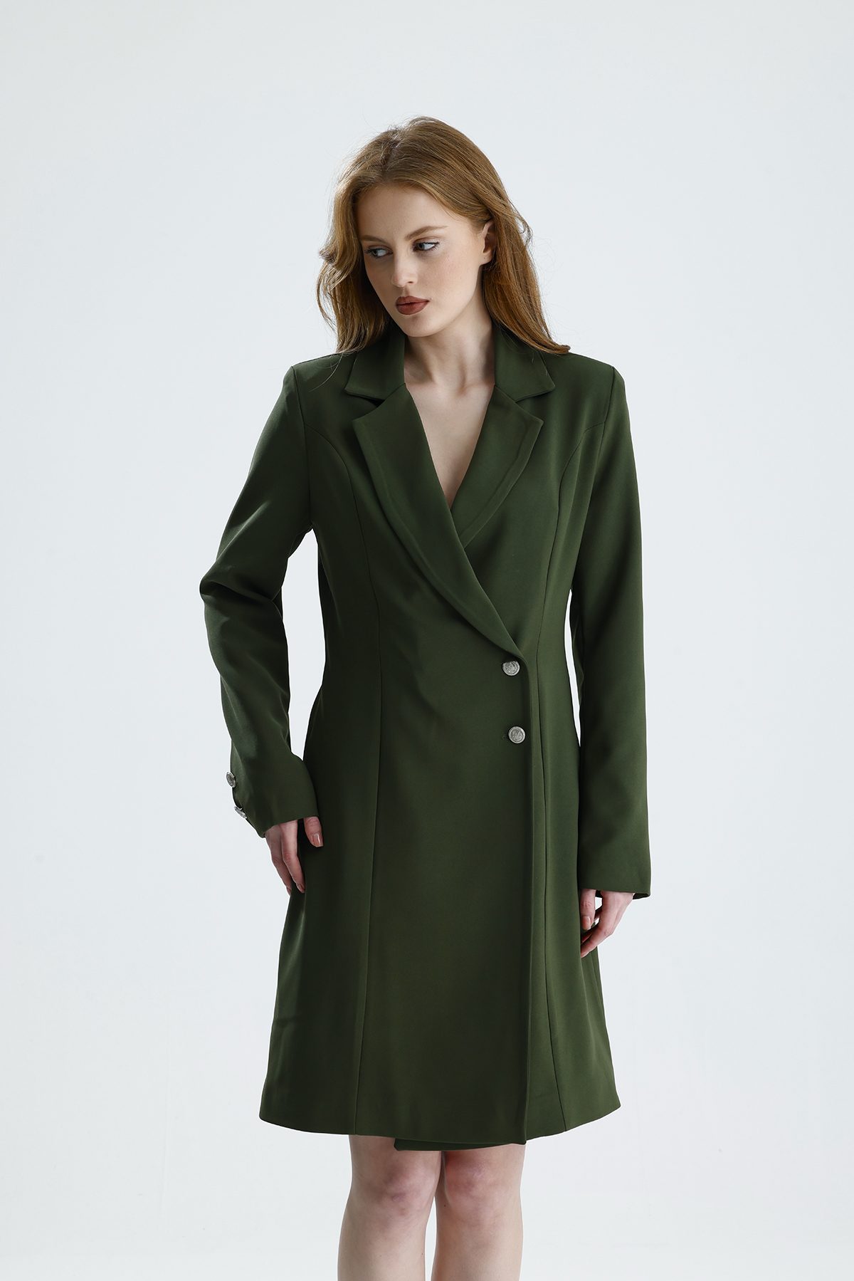 Astarlı Metal Düğmeli Adriyana Ceket Elbise | CKT35856 Hakı