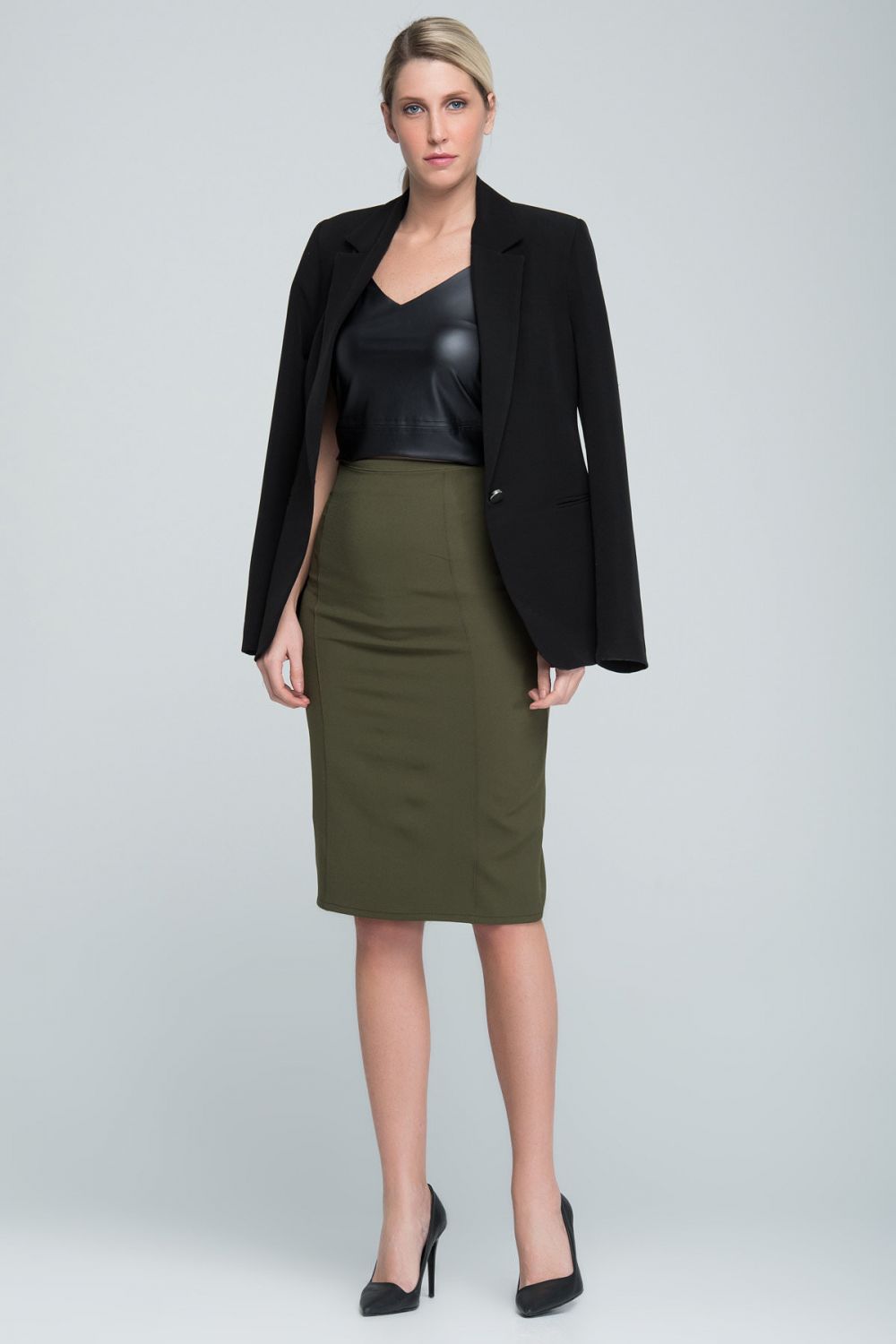 Hakı Yandan Fermuarlı Krep Etek | Etk14251