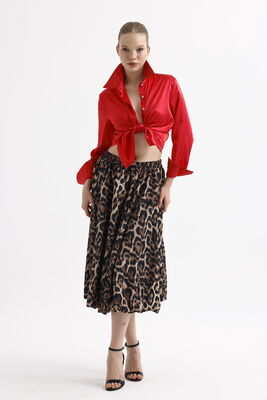Ürün Detay : Beli Lastikli Leopar Desenli Diz Altı Kloş Etek | ETK35937