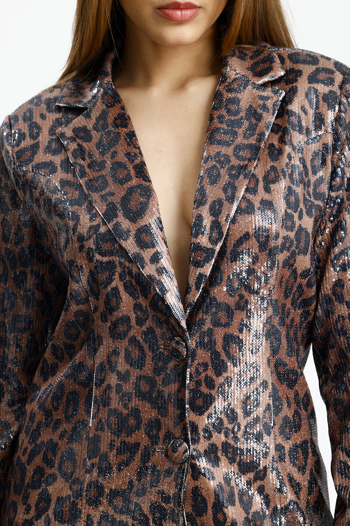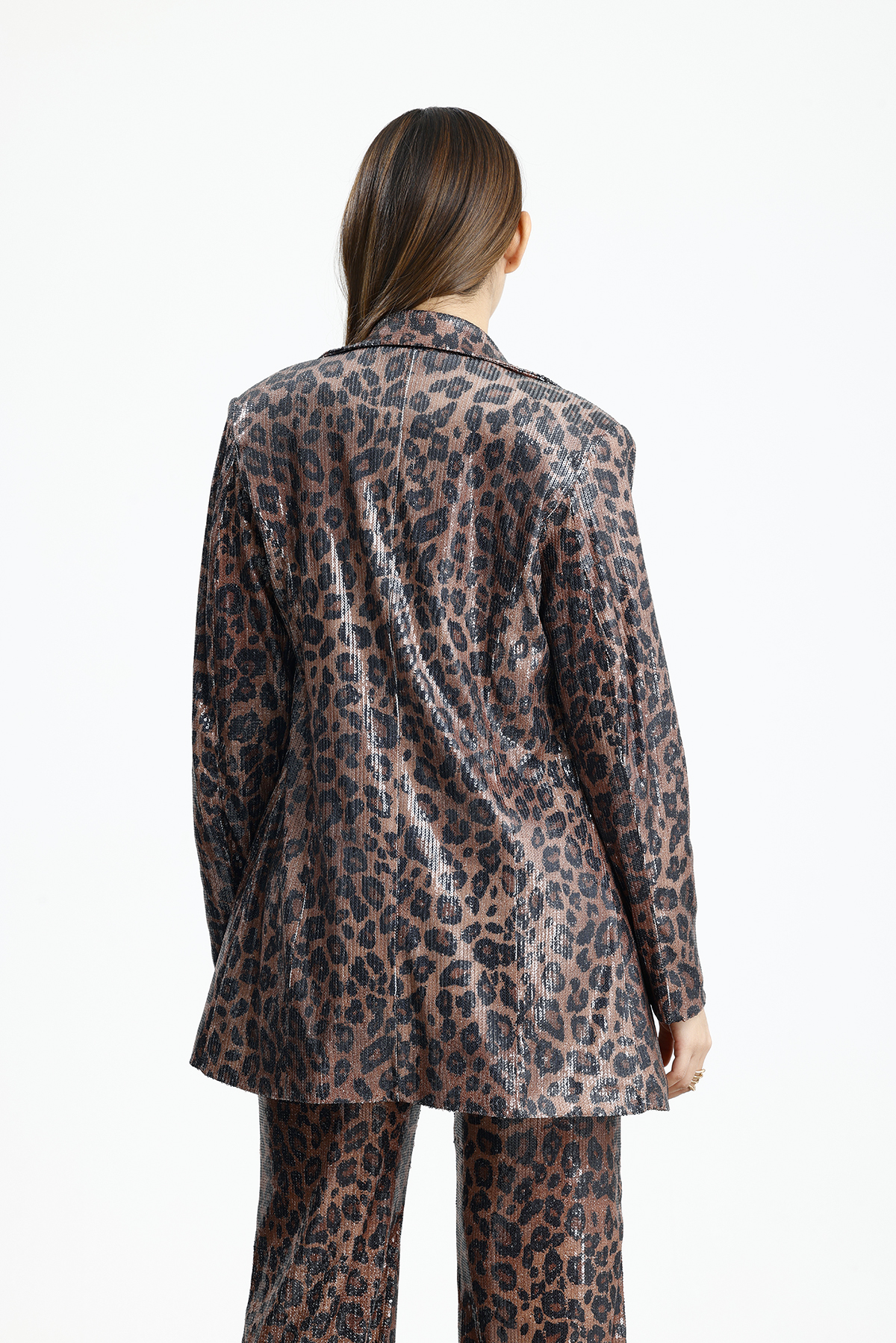 Sense Kahve Siyah Leopar İci Astarlı Desenli Abiye Pul payet Ceket | CKT34264