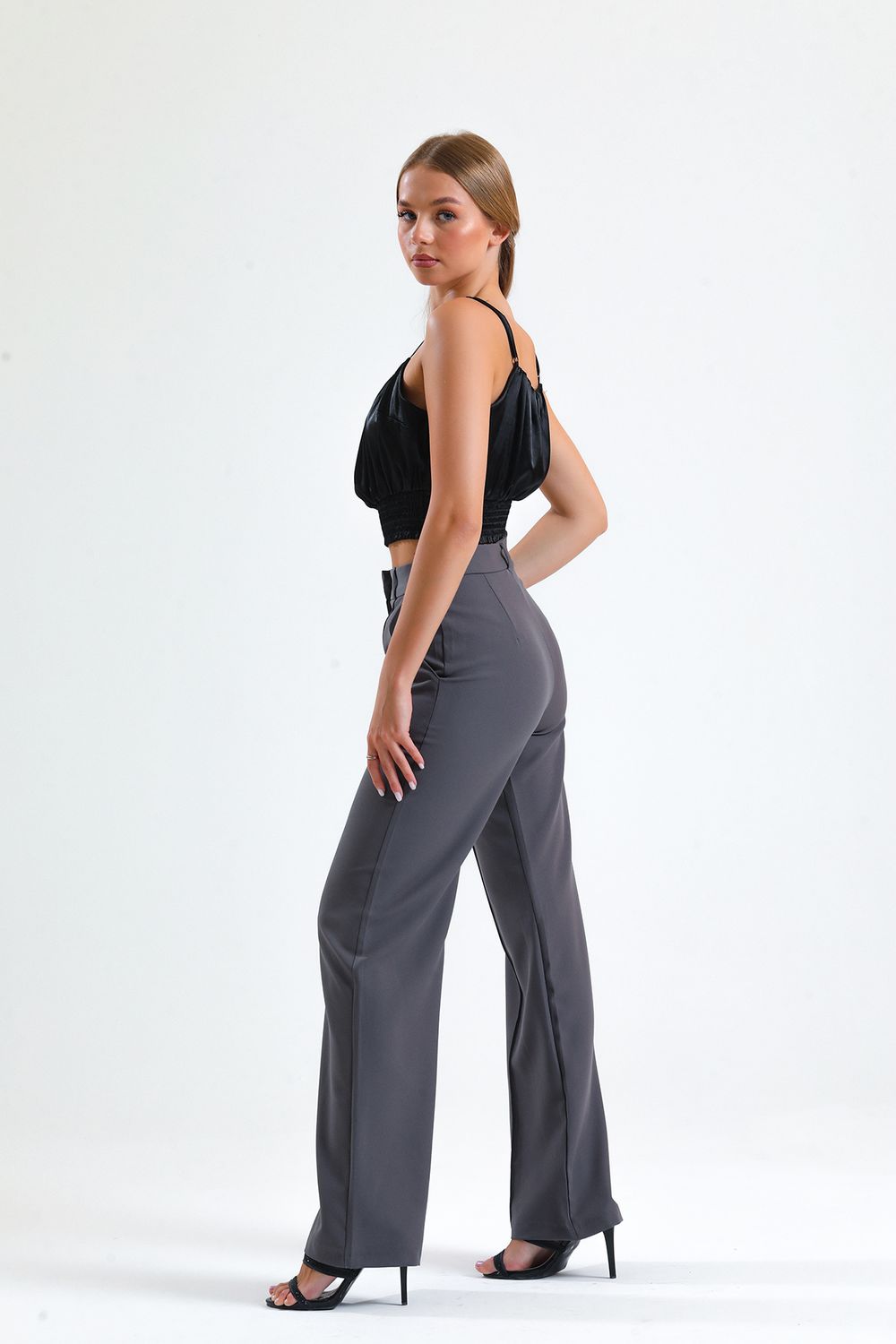 Sense Koyu Grı Süs Dikişli Hürrem Kumaş Bol Paça Pantolon | Pnt34239