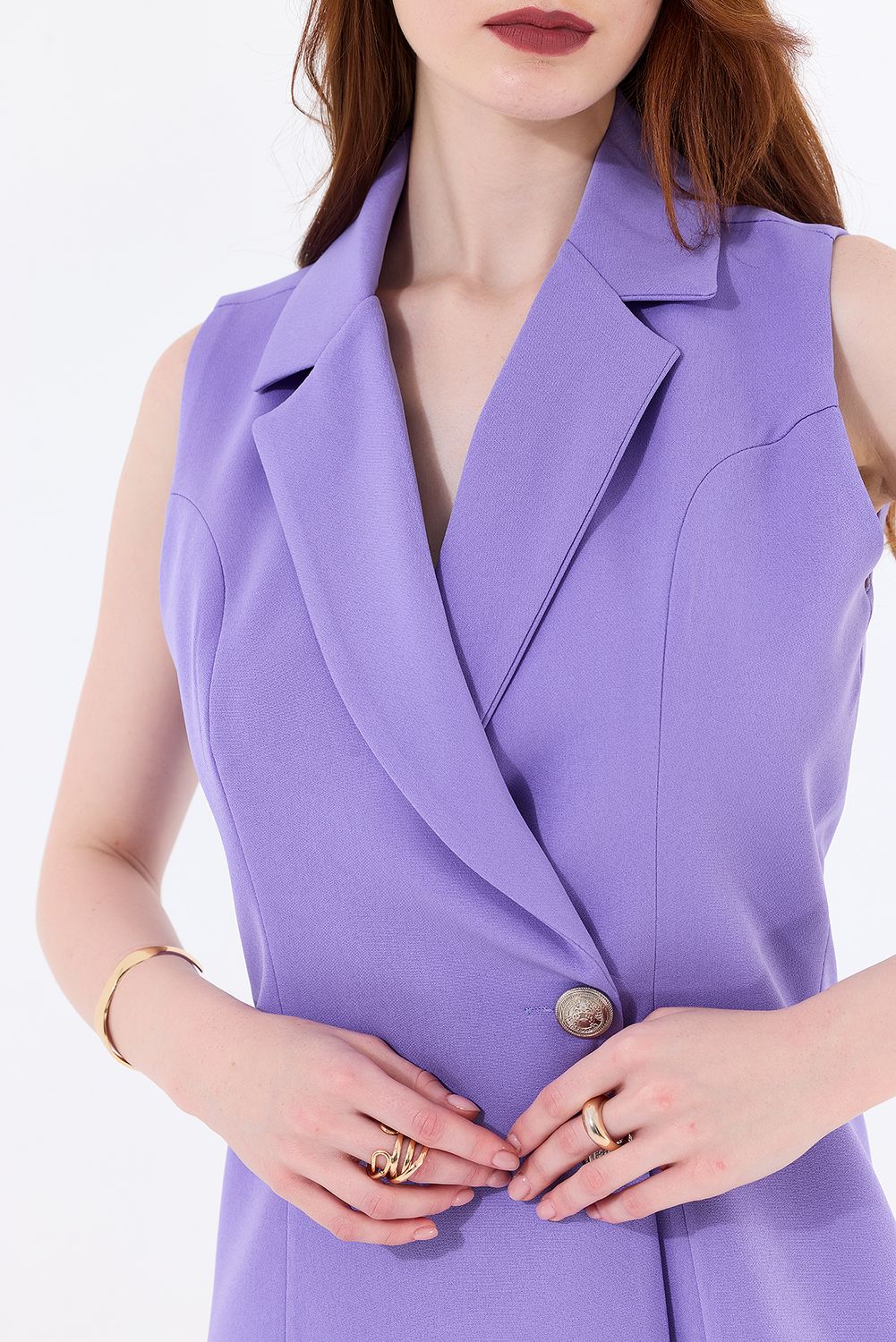 Sense Lıla İçi Astarlı Kolsuz Hürrem Uzun Ceket Elbise | Ckt35288