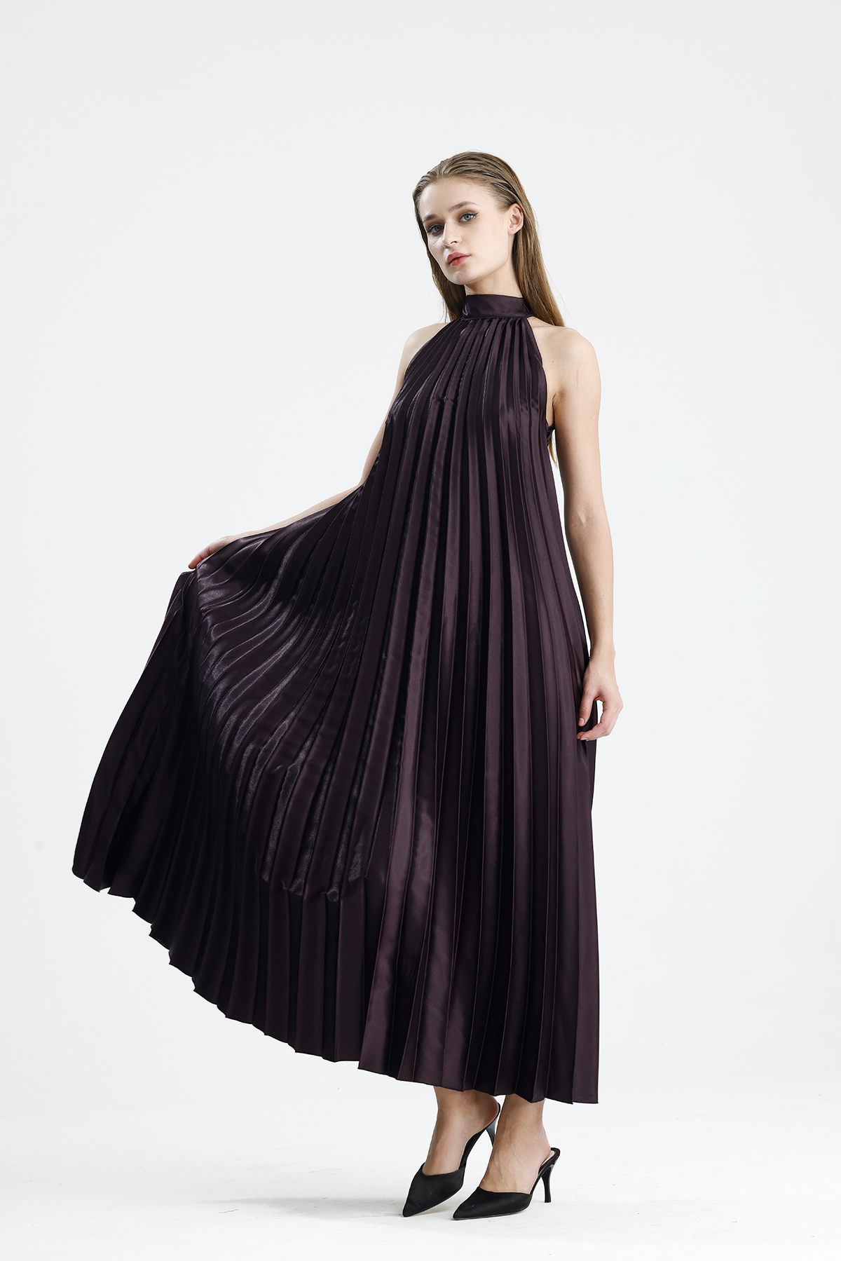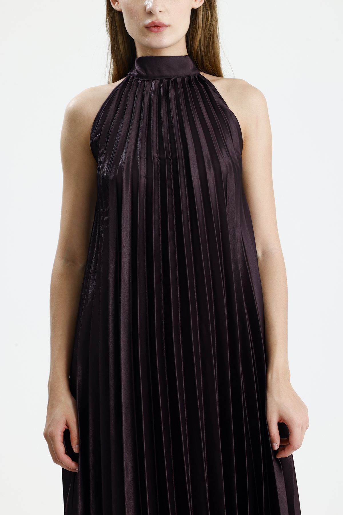 Sense Murdum Boyundan Bağlamali Piliseli Kolsuz Saten Elbise | Elb34513