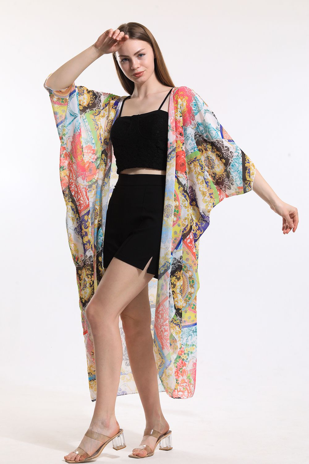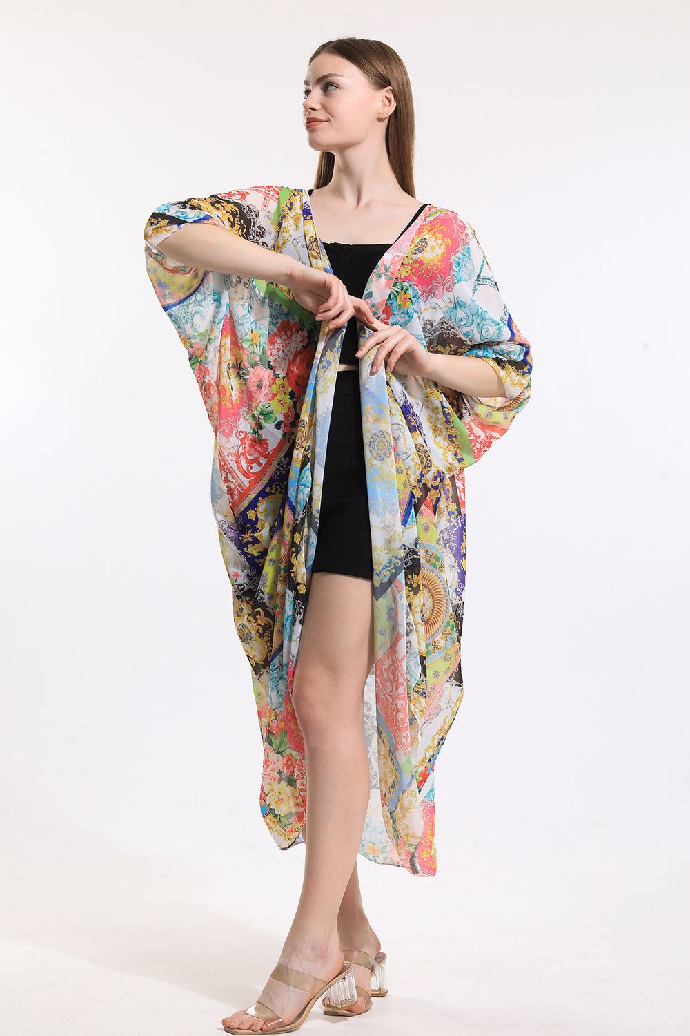 Pano Desen Şifon Plaj Kimono | ELB33597 | SENSE