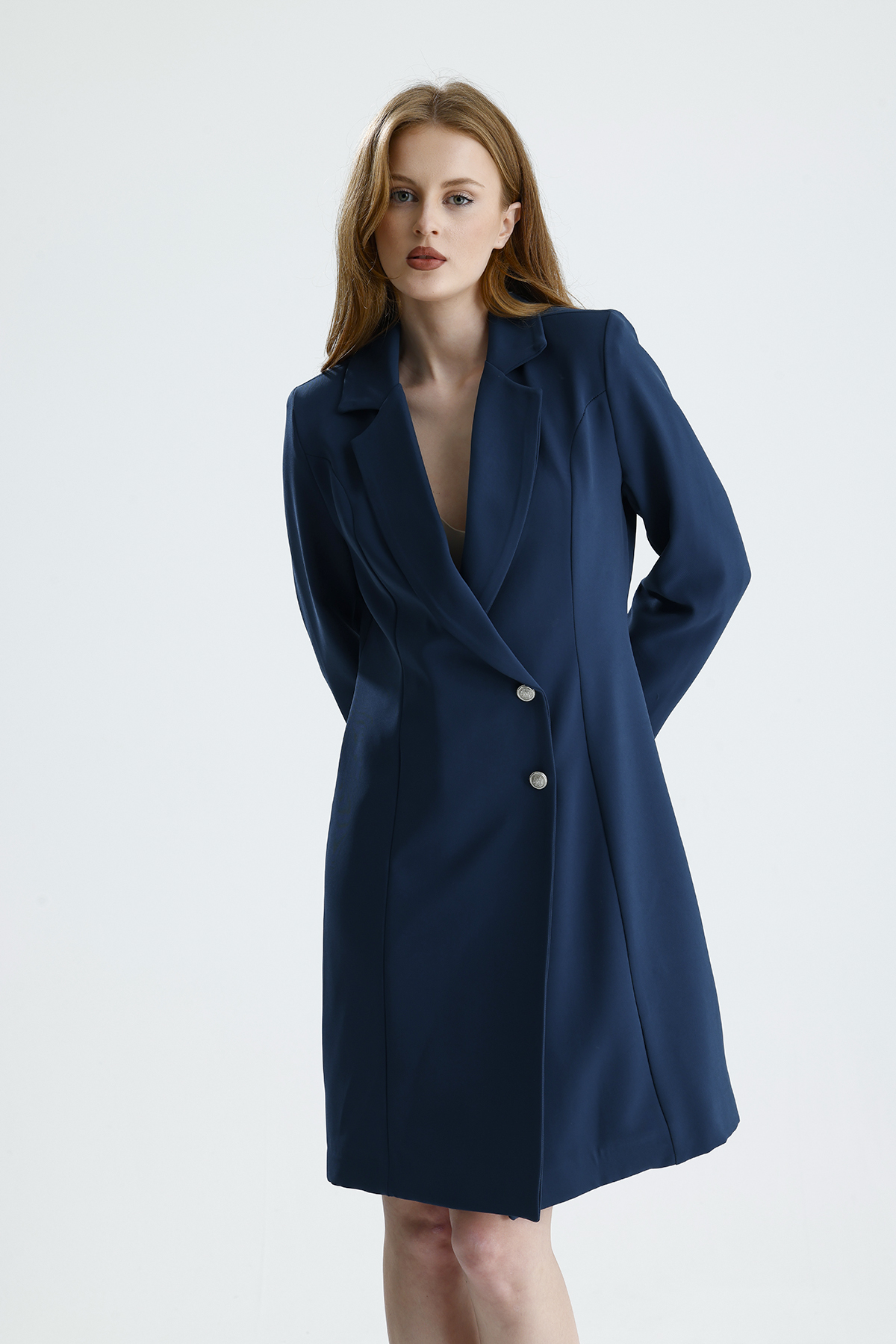 Astarlı Metal Düğmeli Adriyana Ceket Elbise | CKT35856 Petrol