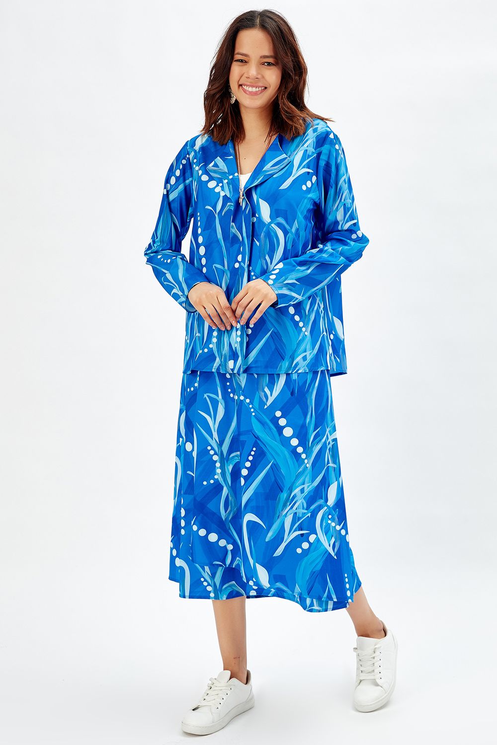 Sense Mercan Mavi Kilim Önü Agraflı Uzun Kaban | Hrk13645