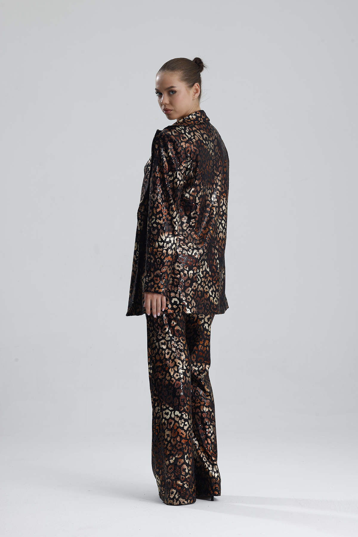 Sense Siyah Bronz Leopar Abiye Takım Elbise | Ceket | Pantolon | Büstiyer 3 Lü Takım TK34264
