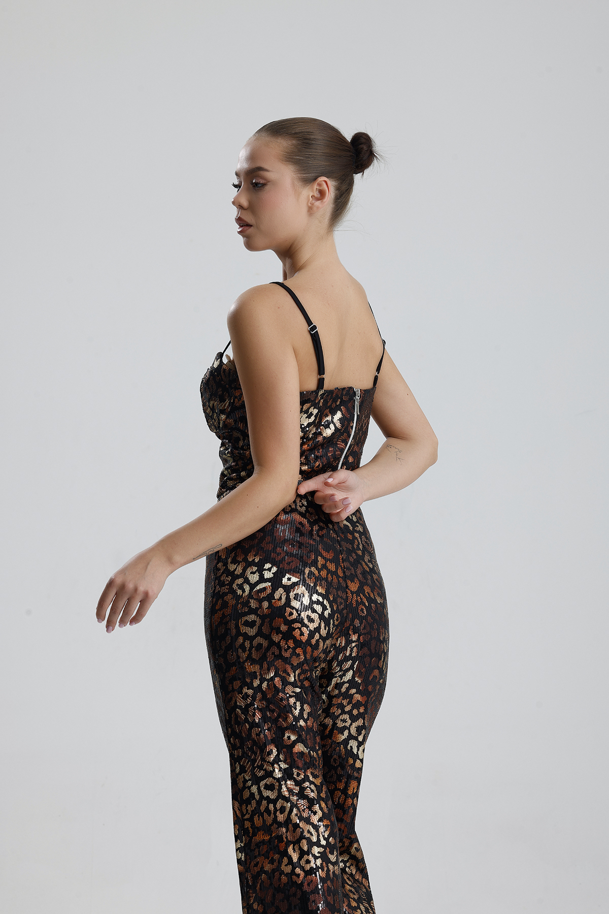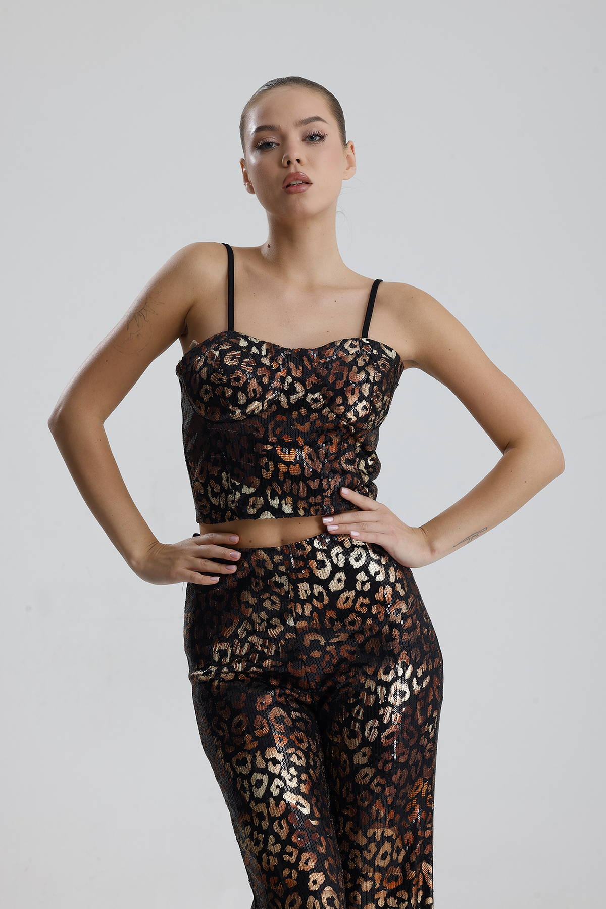 Sense Siyah Bronz Leopar Gloplu Fermuarlı Pul Payet Bustiyer | BUS32675