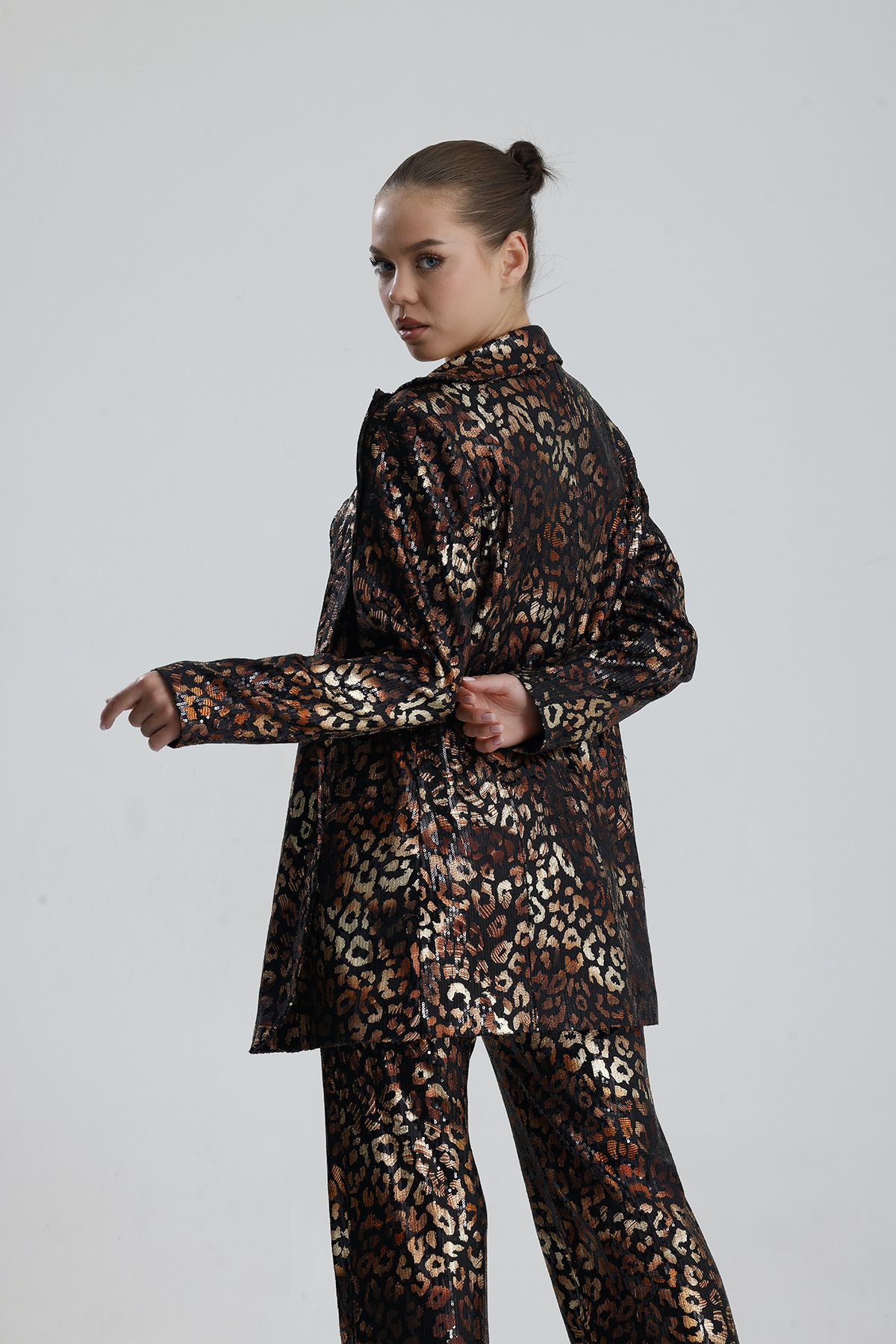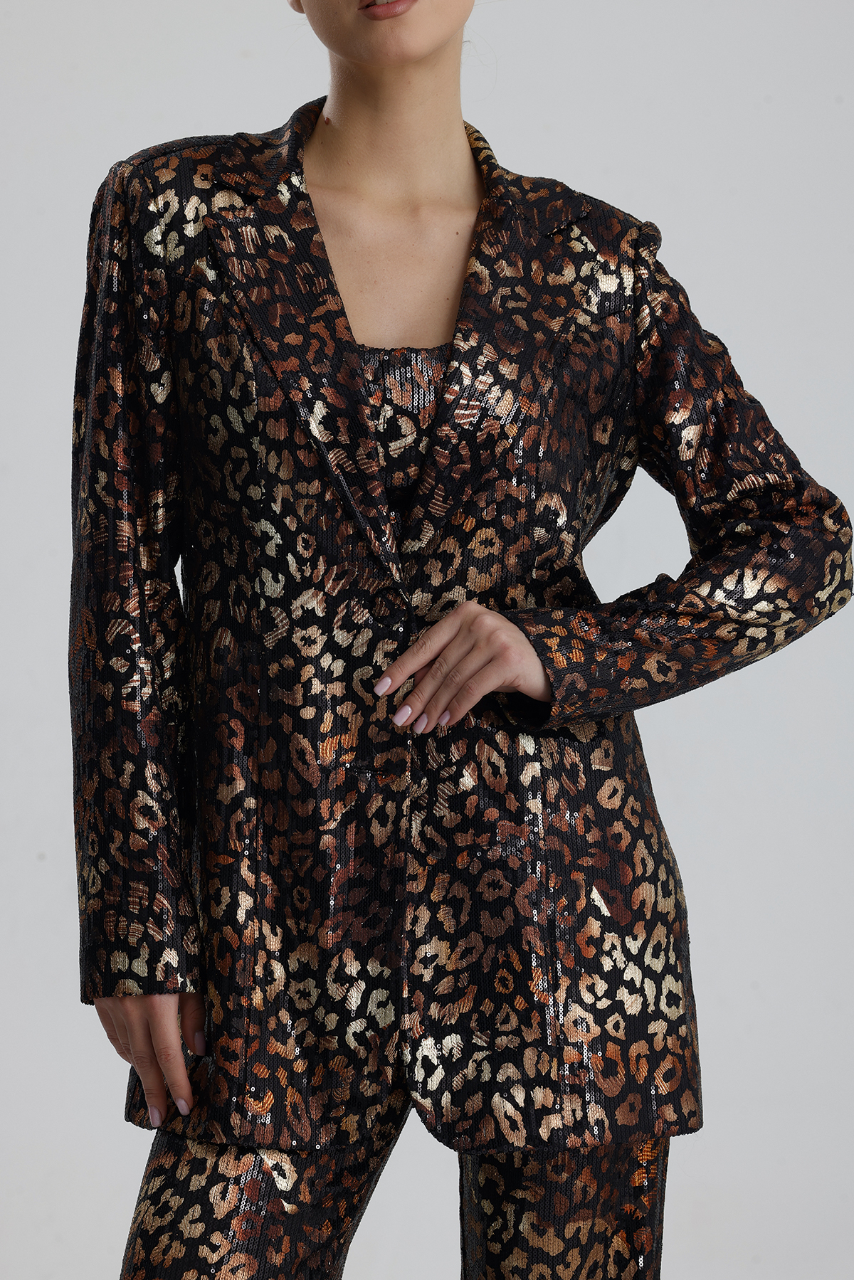 Sense Siyah Bronz Leopar İci Astarlı Desenli Abiye Pul payet Ceket | CKT34264