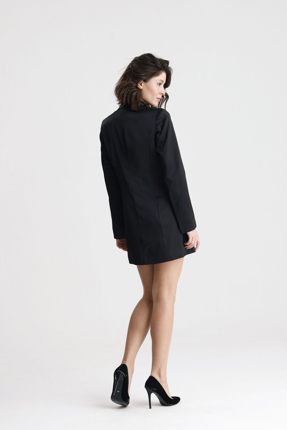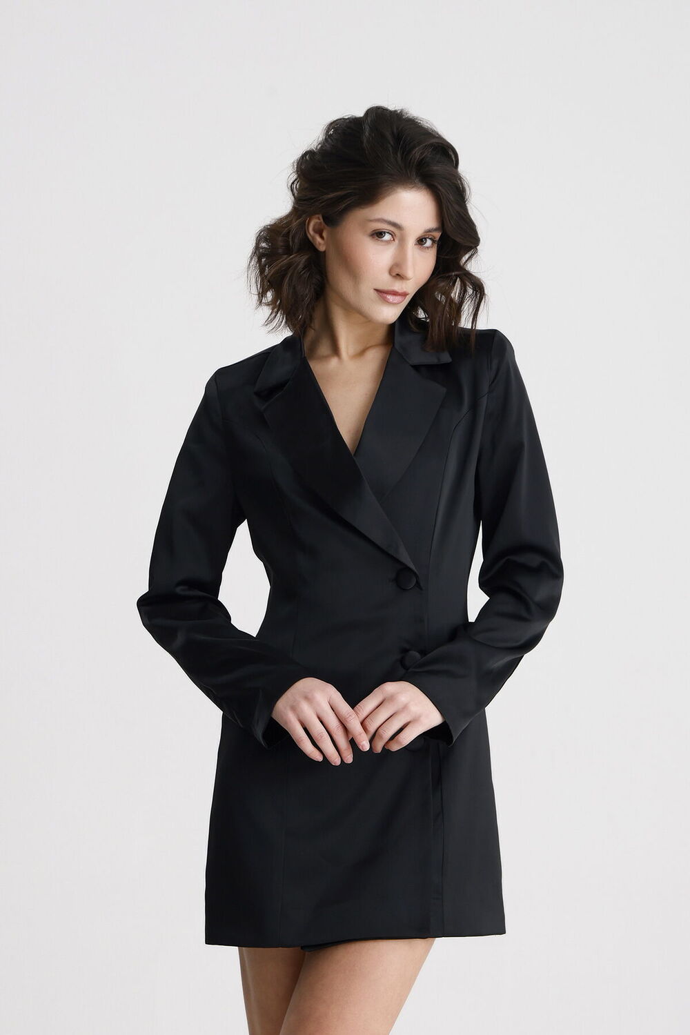 Sense Siyah Kruvaze Yaka İçi Astarlı Saten Blazer Ceket Elbise | ELB36615