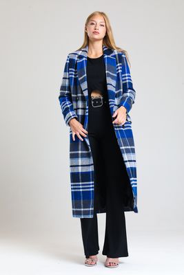 Sense Mercan Mavi Kilim Önü Agraflı Uzun Kaban | Hrk13645