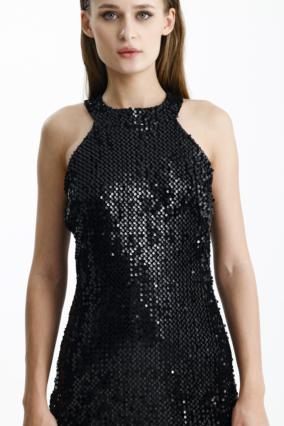 Sense Siyah Siyah Astarlı Parlak Payet Mini Elbise – Parti & Davet Elbisesi | ELB35995