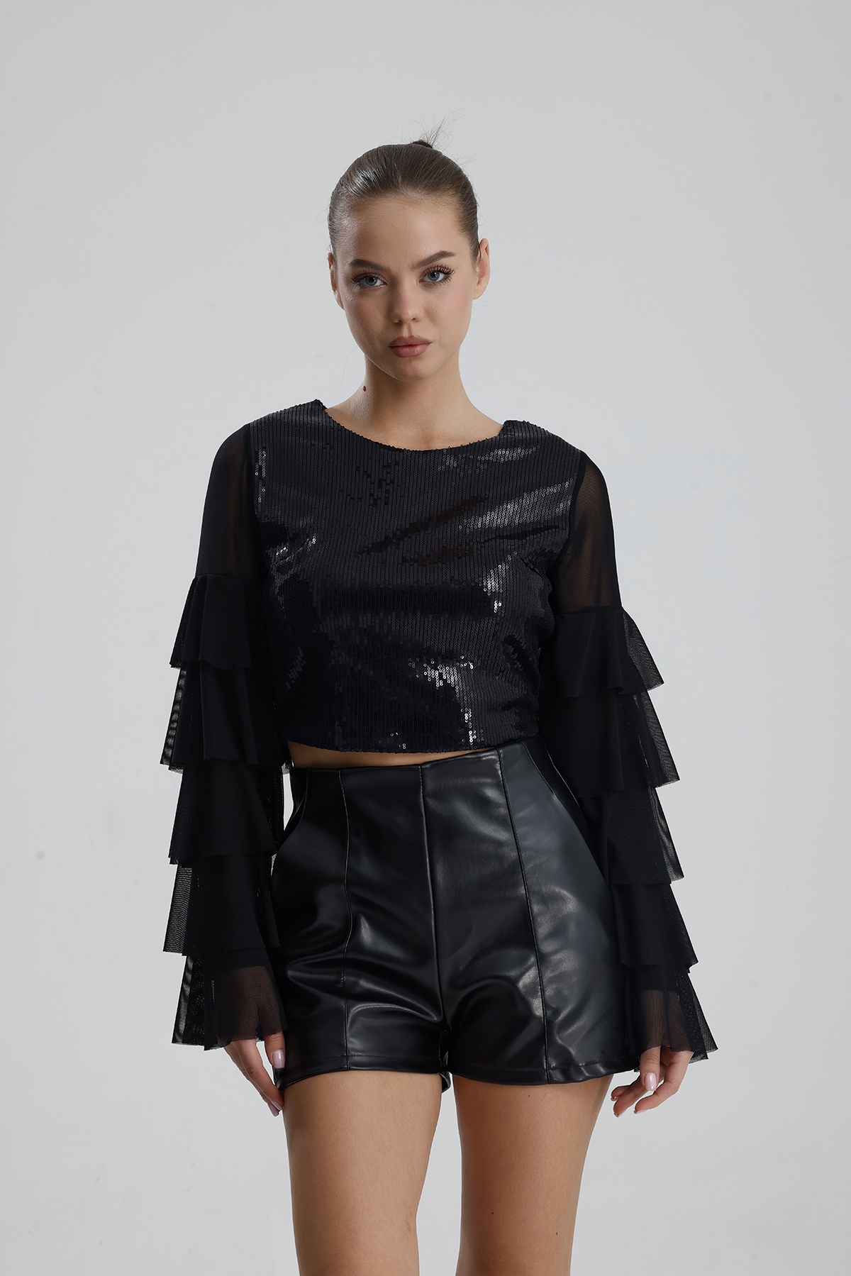 Sense Siyah Suni Deri Yüksek Bel Şort | ŞRT34533