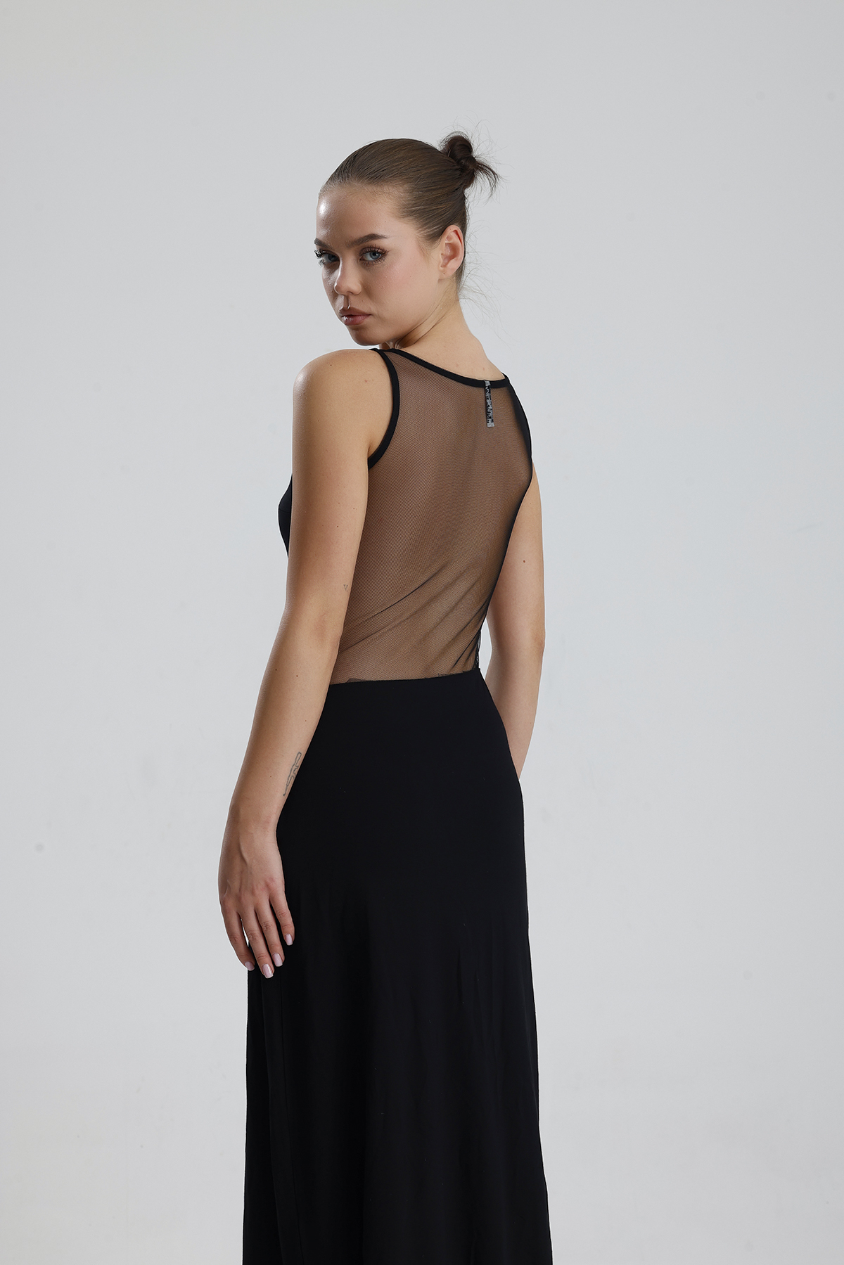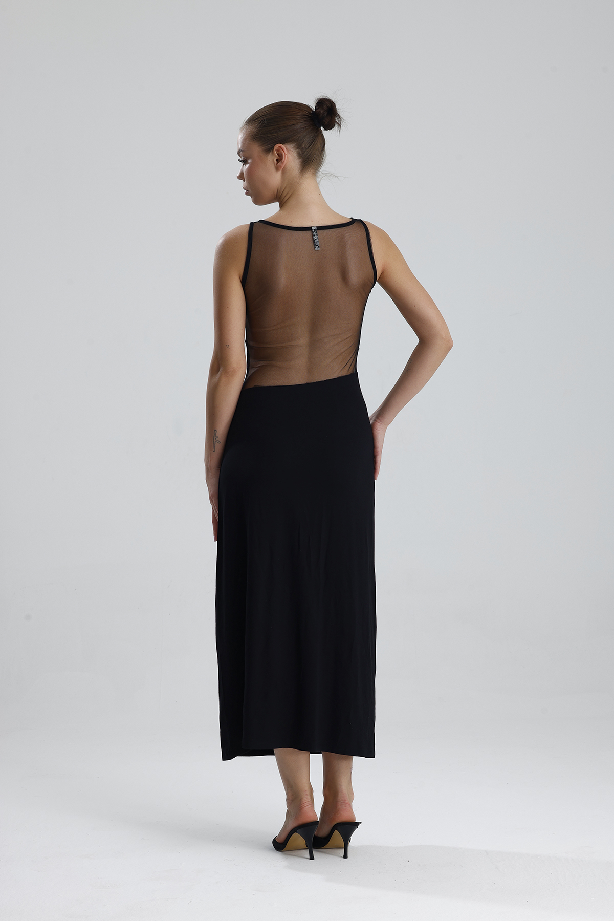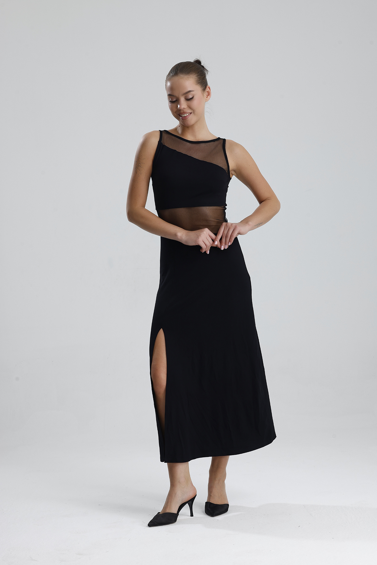 Sense Siyah Transparan Detaylı Uzun Elbise | ELB35747