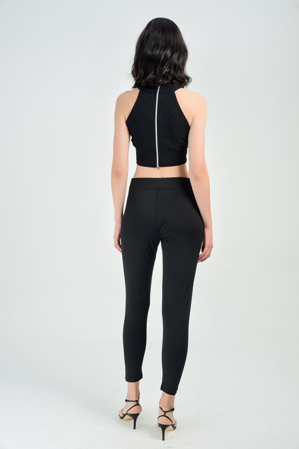 Sense Siyah Pantolon - Bilekte Atlas Kumas Pantolon | Pnt19003