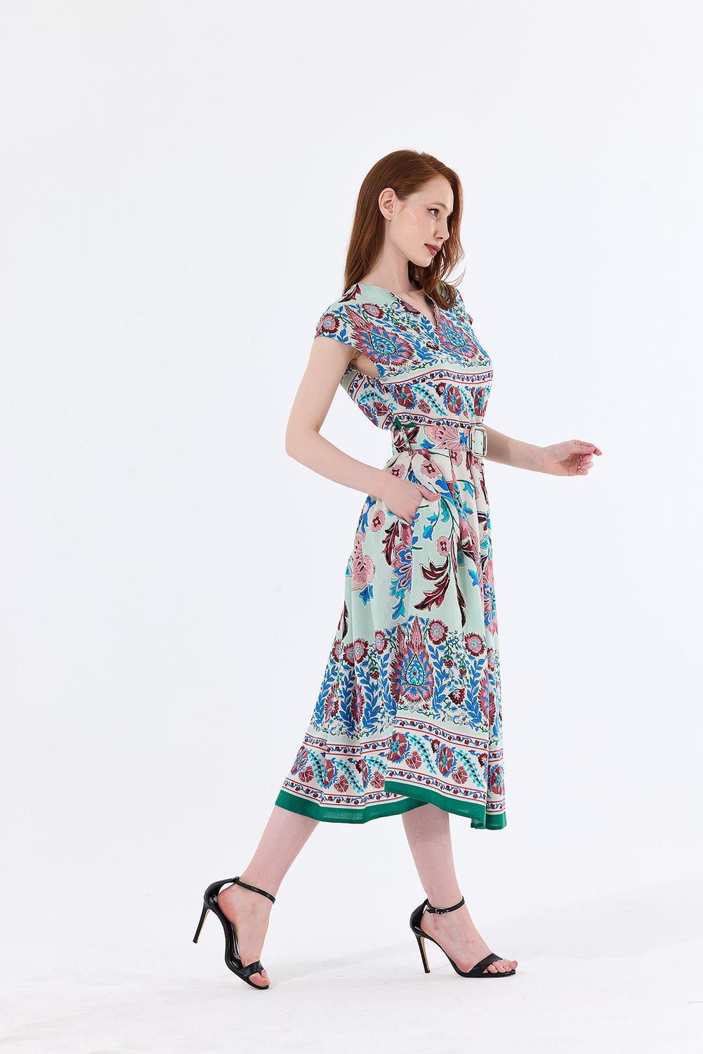 Sense Su Yeşili Kemer Detaylı Uzun Empirme Viskon Jile Elbise | Elb35648