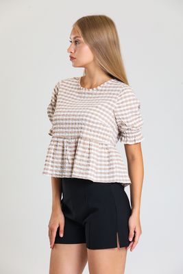 Ürün Detay : Arkası Düğmeli Kısa Kol Gofre Bluz | Blz33494