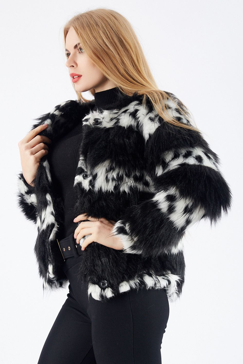 Siyah-Beyaz Çıtçıtlı Astarlı Peluş Ceket Ckt32378 | SENSE