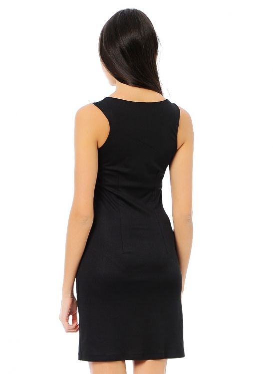 Siyah Polyester Yuvarlak Dairesel Yakalı U.Kol Dalgıç Elbise | Elb13547