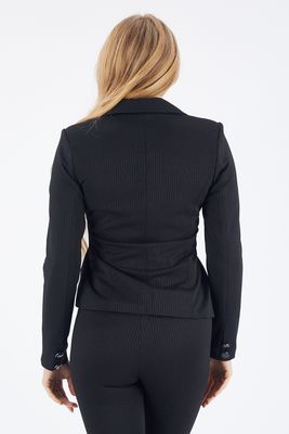 Sense Siyah Çift Düğmeli Likralı Fitilli Ceket