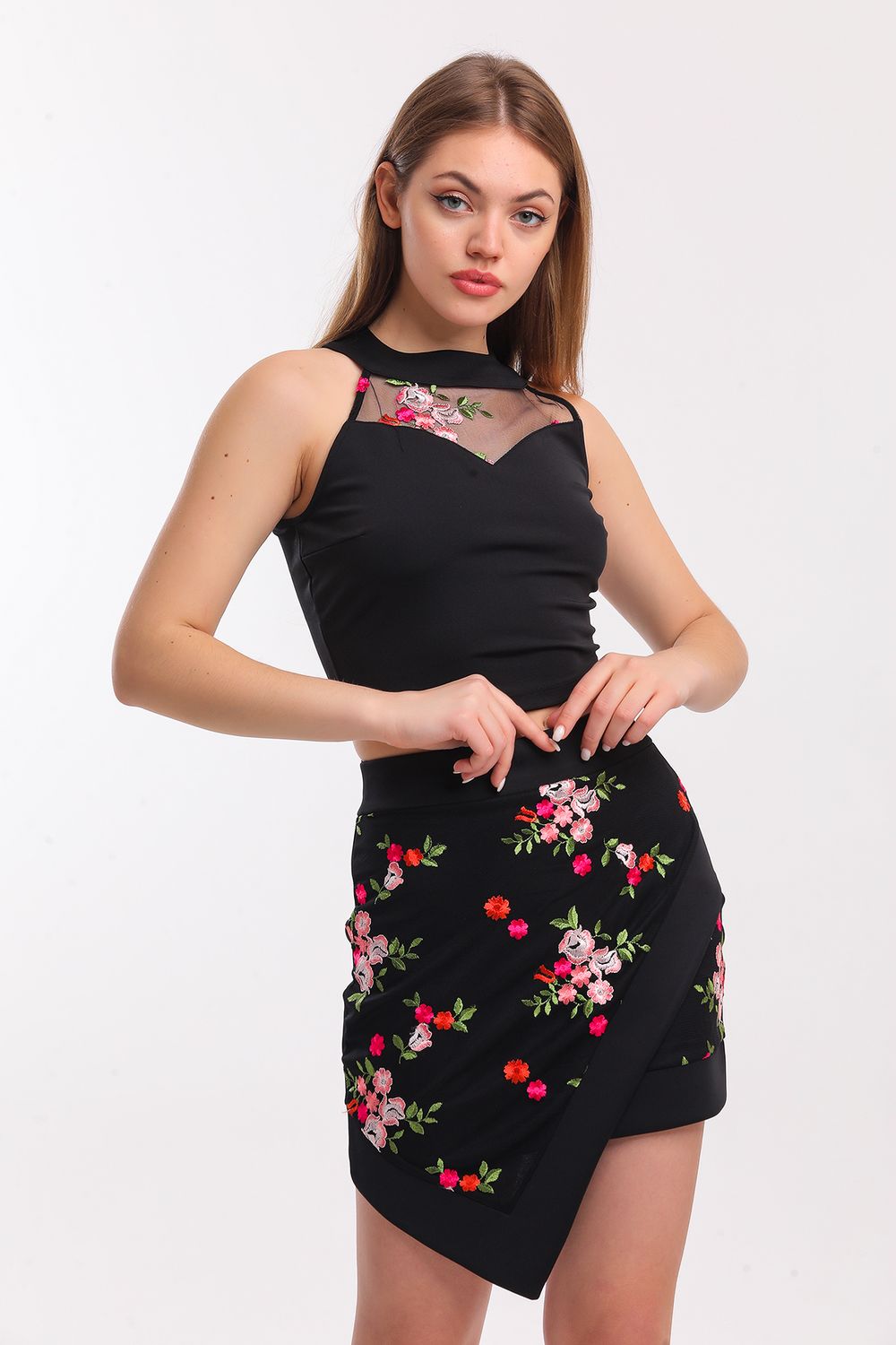 Sense Siyah Önü Tül Çiçekli Zarf Etek_Etk31379