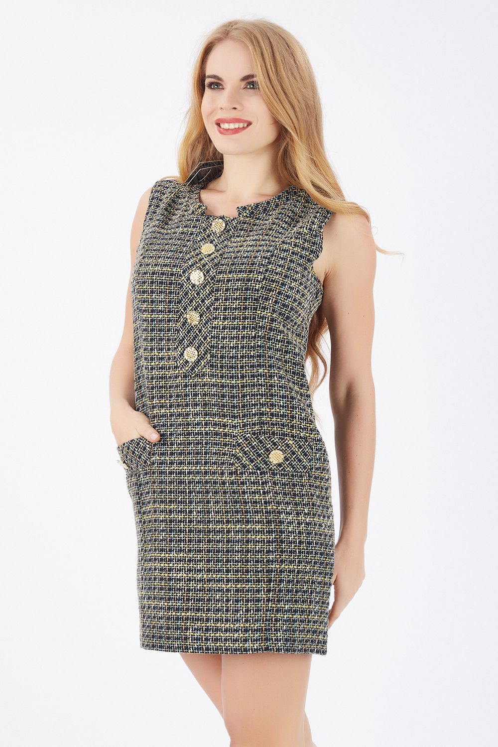 Siyah-Sarı Önü Düğmeli Astarlı Elbise | Elb32993