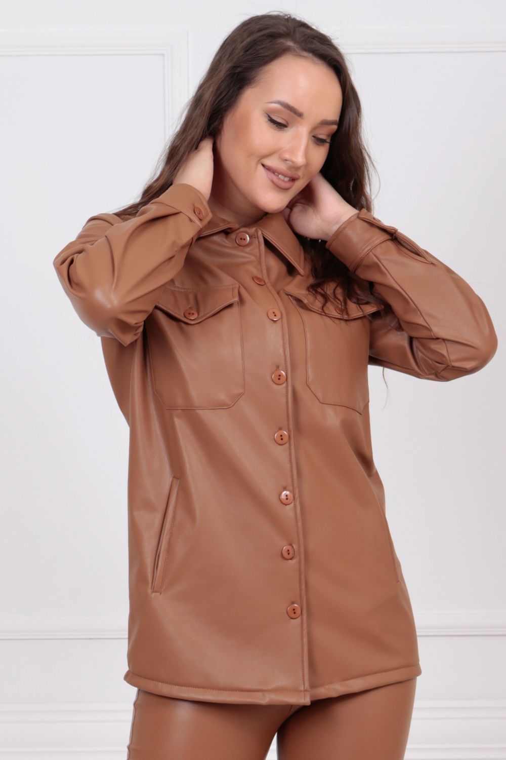 Sense Taba Önü Cepli Düğmeli U Kol Deri Gömlek GML33163