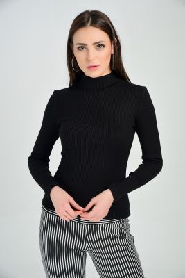Siyah Uzun Kollu Madonna Yaka Rıbana Bluz | Blz31014