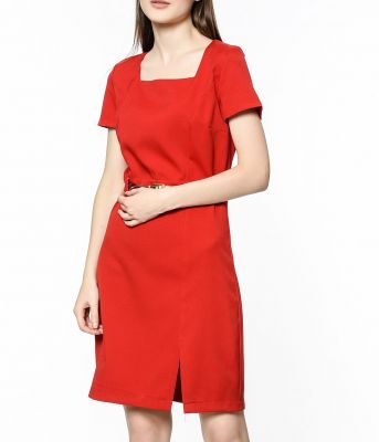 Sense Kırmızı Balıkcı Yaka Kolları Ve Omuz Robaları Tül Elbise | Elb31113