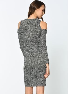 Grı Omuz Baslari Acık Balıkcı Yaka Elbise | Elb14340