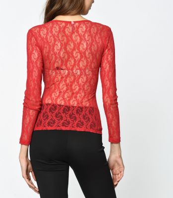 Kırmızı Havuz Yaka Uzun Kollu Kolları Ve Önü Lazerli Bluz | Blz14920