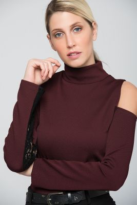 Bordo Omuz Baslari Acık Balikci Yaka Tul Garnili Bluz | Blz14378
